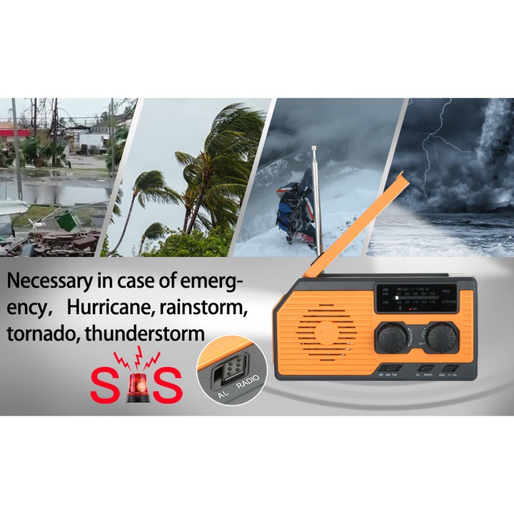 Mod de alimentare: generare de energie cu manivela/energie solara/incarcare USB/baterie uscata AAA